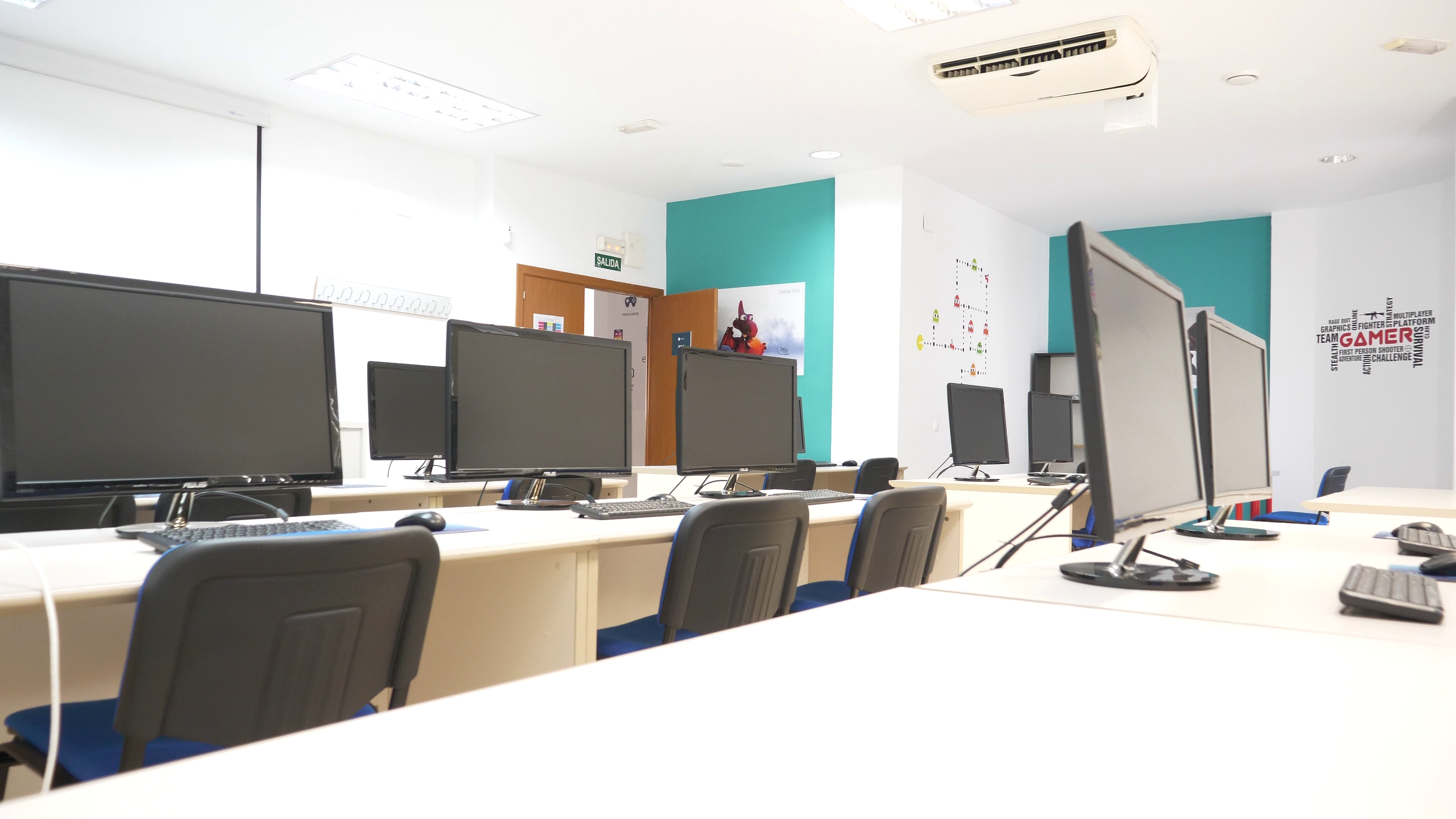 La Escuela cuenta con 600 metros cuadrados en sus instalaciones ubicadas en el centro de Linares y dispone de aulas equipadas con el último equipamiento tecnológico y herramientas digitales usadas en la industria: tabletas digitales, impresoras 3D, gafas AR/VR, Raspberry Pi y multitud de gadgets tecnológicos adicionales, así como el software más usado en la industria: Unity, 3DS Max, Maya, ZBrush, Adobe Premier, After Effects, o Photoshop, entre otros.